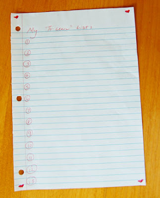 I wrote on the note the beginnings of a “To-Learn List”. I got this idea here. They said this: