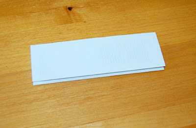 Begin by folding the paper in half the long way, and making a sharp crease. (The vertical creases you see in the photo are coming up.)