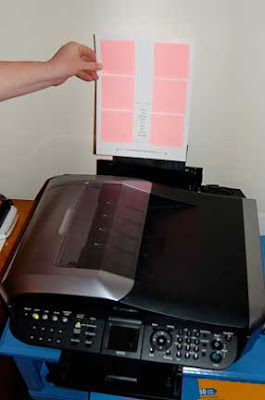 Place the printed page with the sticky notes attached into the manual feed of your printer. Mine is in the back, and I need to put it in upside down like this, to get it to print in the proper direction. It is very important that your sticky notes go into the printer with the adhesive side first. They will lay flat and go right through with your paper. Now, print ONLY the 2nd page of the document.