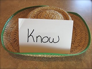 I took this hat image from Primary Singing Ideas. I like her idea of having a child wear a word from the song, without knowing what it is, then having the children omit that word while singing. The child with the hat then guesses what word was left out. The Silly Singing Lady describes it better here.