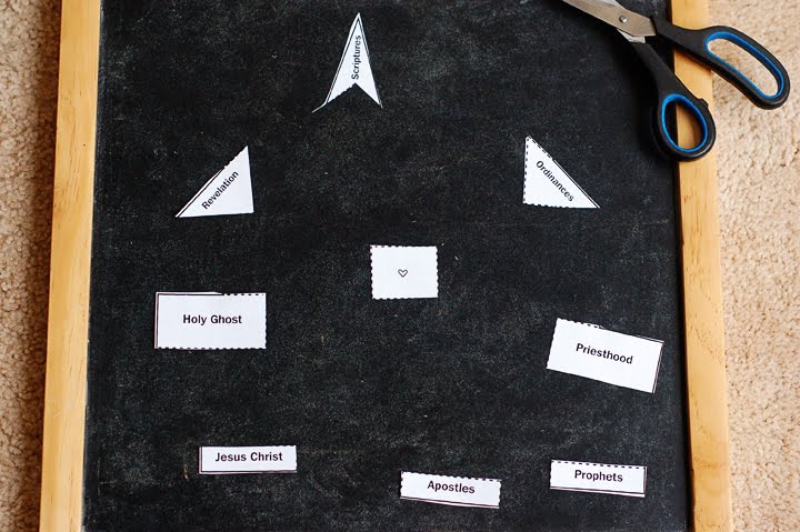 After you cut the church apart and discuss the Apostasy (when Christ’s Church, priesthood and revelation were taken away from the earth), put the pieces back together to signify the restoration of the Gospel.