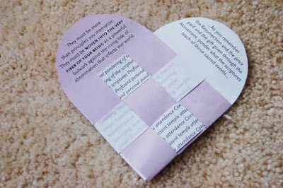 With that quote in mind, I made a paper woven heart basket. The words on the woven strips refer to this quote: