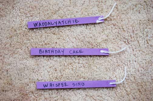 On the back of each candle I wrote a way for us to sing (found here). The youngest birthday child will get to choose the candle we sing from.